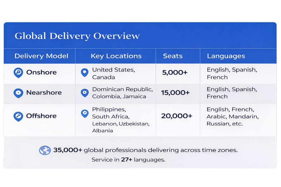 Global Empire’s Global Capability Centers (GCCs) enable round-the-clock delivery through a strategic mix of onshore, nearshore, and offshore locations. Our globally distributed teams provide scalable operations, multilingual support, and industry-specific expertise—ensuring speed, quality, and cost efficiency for our clients worldwide.